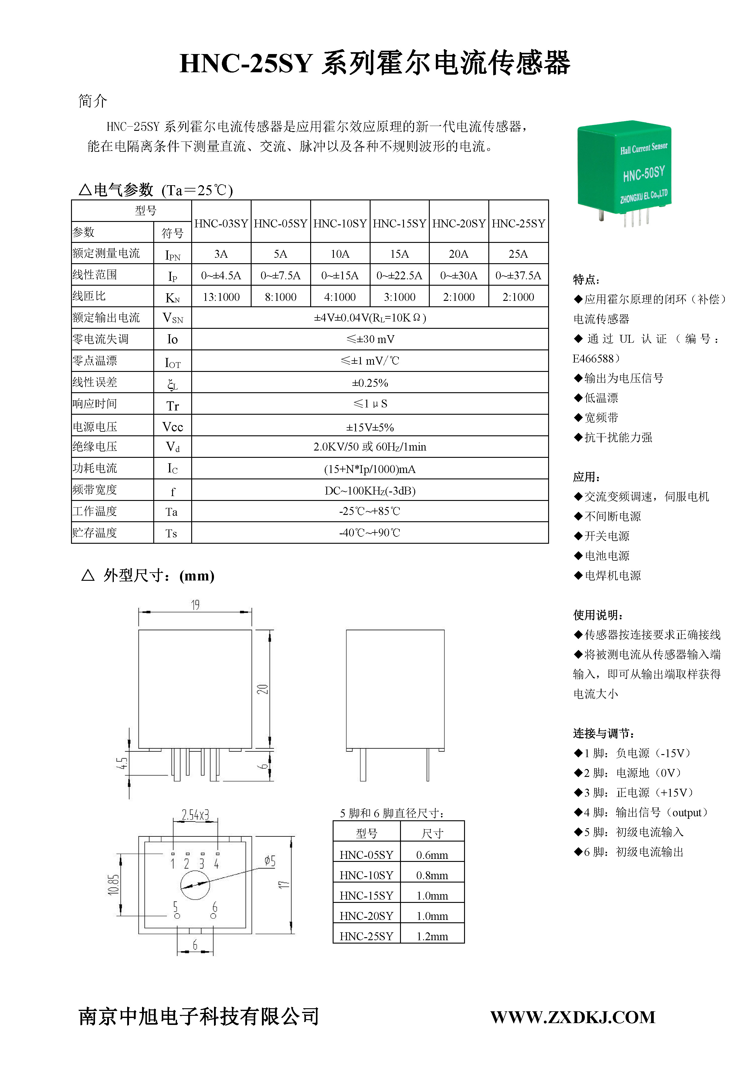 HNC-25SY系列霍爾電流傳感器是應用霍爾效應原理的新一代電流傳感器,能在電隔離條件下測量直流、交流、脈沖以及各種不規則波形的電流。